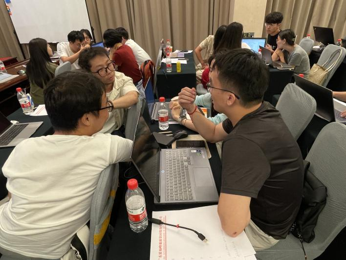 7月9日至13日,本阶段移师校外教学实践基地,重点锤炼新教师的教学基本功。培训特邀2位知名高校专家倾囊相授:华南理工大学陆芳教授详解“基于OBE理念如何上好一门课”和深入探讨“AI赋能BOPPPS有效教学设计”、深圳大学费跃农教授主讲“以学生为中心的理实一体化教学”以及“混合式教学课堂实践”等前沿教学理念与方法。阐述了STARA教学模式的情境、任务、活动、资源和评价五个要素,AI智能体在教学中的应用,课程思政融入学习活动的具体方式。在培训过程中,老师们组队合作,并深入探讨、相互交流各自的教学设计。
