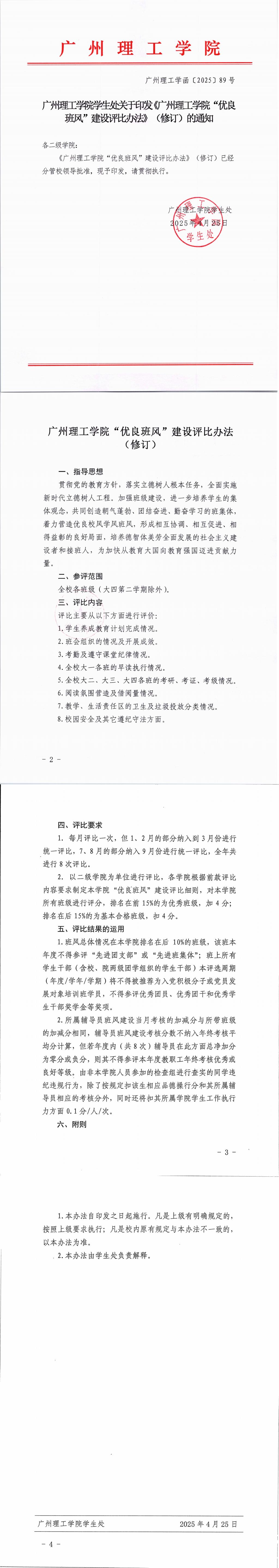关于印发《广州理工学院“优良班风”建设评比办法》(修订)的通知