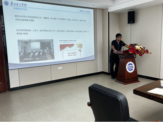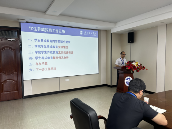 会议伊始,各二级学院党总支书记依次进行了汇报。“312学生养成教育工程”在各二级学院的扎实推进下取得了一定成绩,各学院紧扣“品德素养、学业素养、行为素养”三大模块,通过思想引领、学风建设、专业实践、劳动教育等多元化活动,有效促进了学生良好习惯的养成和综合素质的提升。如工商管理学院通过“到梦空间”平台搭建院级部落,开展了“红色教育”“AI时代院长下午茶“等活动,既传承红色基因,又面向未来发展,体现了学院“思想引领+时代赋能”的育人理念。计算机科学与工程学院以“科技+思政”为主线,组织“义务维修”“软件识图挑战赛”等活动,进一步提升了学生的创新实践能力。人文与教育学院将传统文化融入养成教育活动,成功举办“非遗拓印”“美育节”等特色活动,让学生在实践体验中感悟中华优秀传统文化的深厚底蕴,培养了学生的审美情趣和艺术修养。外国语学院结合自身转业特色聚焦“外语+”模式,通过“红色经典读书会”“四级模拟考”等方式,实现了“专业精进+素质拓展”的双赢。