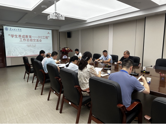 为全面梳理和总结“312学生养成教育工程”实施以来的工作成效和经验,进一步推动学生综合素质培养深入开展。我校于7月17日上午在行政楼816召开了学生养成教育工作总结交流会。学校党委副书记、副校长张志红、学生管理部部长刘亮、学生处副处长林国健、各二级学院党总支书记及学工组长出席会议。