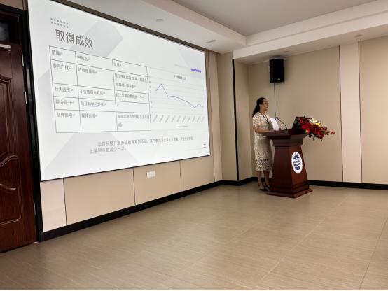 随后,学生管理部长刘亮就全校学生养成教育的开展情况进行了全面通报。学生养成教育计划主要对象为2023、2024级在校生,目前99.78%的学生已完成好习惯项目的选课。刘部长指出,目前整个计划的开展主要以到梦空间系统为辅助,他系统分析了自系统在我校投入使用以来,各部门、各二级学院发布活动的总次数、活动发布分类情况及素质教育周的活动开展情况等,并展示了各二级学院开展的特色活动。最后,刘部长反馈了各学院在使用系统、开展活动时存在的共性问题,也提出了组织学生开展“到梦空间”系统使用培训、借助到梦空间系统平台的大数据分析功能定期对养成教育活动的参与情况、学生的兴趣爱好进行分析的针对性建议。