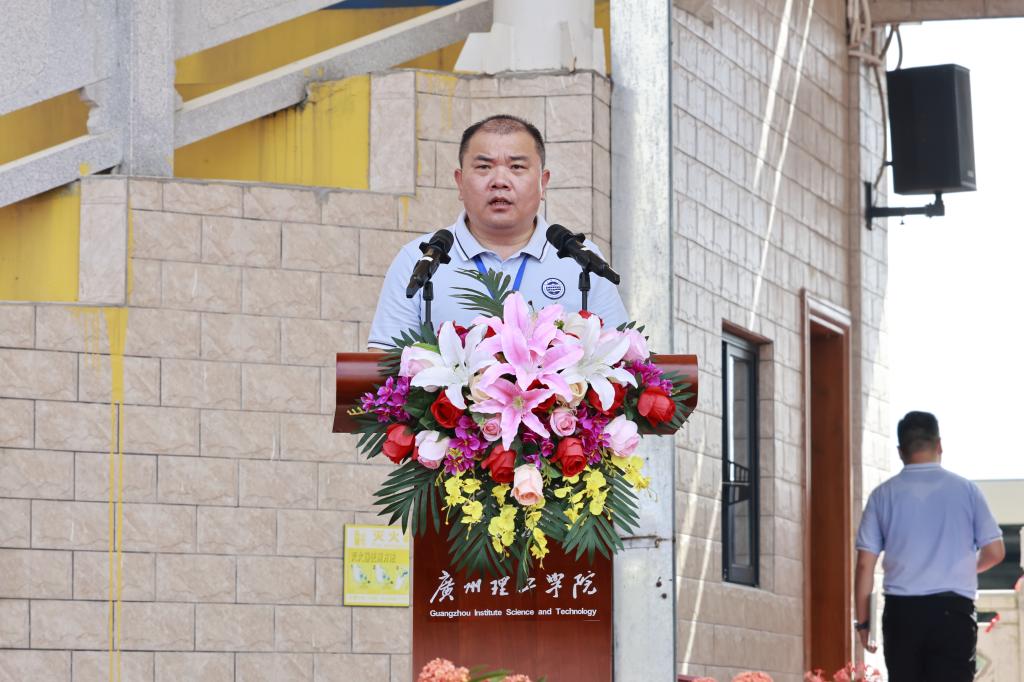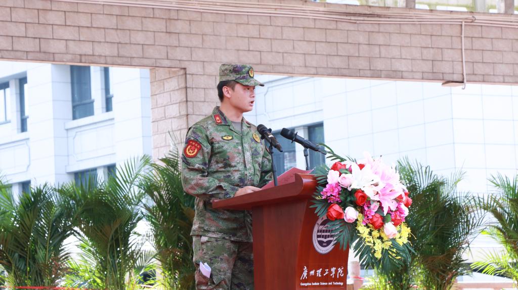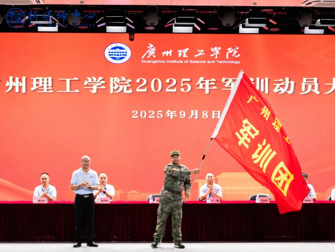 军训动员大会上,黄圣诚书记和肖海副校长分别在广州白云校区和惠州博罗校区为军训团授旗,副校长肖海、军训团王继浩副团长分别宣读《关于成立2025级新生军训团的决定》,军训团许就平团长接旗并作动员讲话。许团长表示,大学生军训是全面贯彻党的教育方针、落实习近平强军思想、提高国防教育质量的重要途径,是学校“三全育人”“五育并举”的有效环节,也是落实立德树人根本任务、促进学生全面发展的重要举措。他代表全体军训教官郑重承诺,教官团队将以良好的形象组织军训、以过硬的素质抓好军训、以严谨的作风检验军训。他强调,全体承训教官要秉承广州理工学院军训的优良传统,用良好的军人形象和过硬的军事素质,坚持按纲施训、科学组训,认真履行职责使命。他希望,同学们以实际行动完成好训练任务,以崭新的精神面貌去迎接未来的学习和生活。