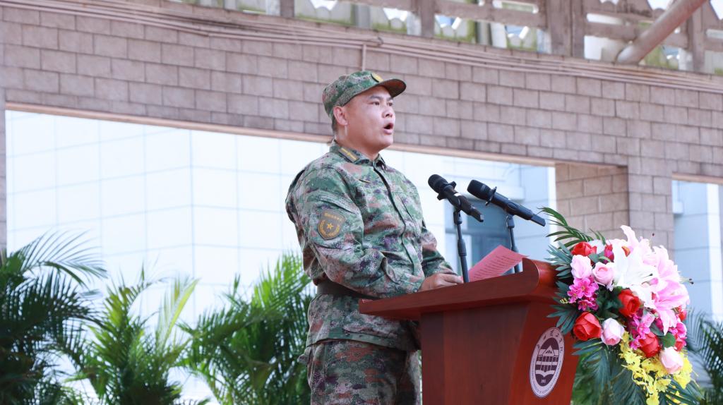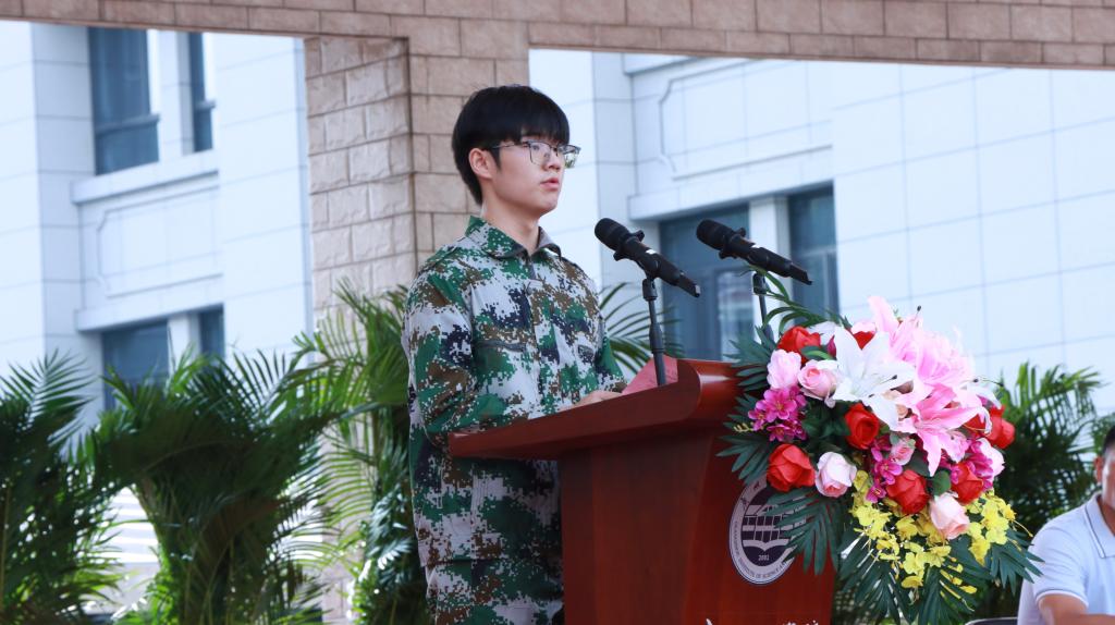军训团王继浩副团长宣读《关于成立2025级新生军训团的决定》(惠州博罗校区)