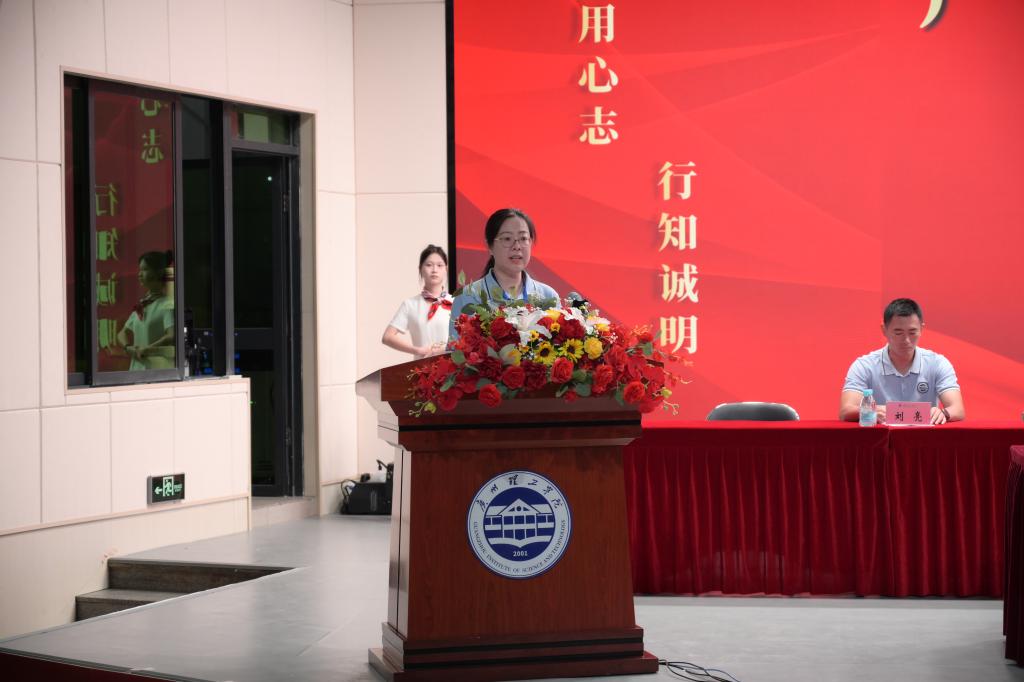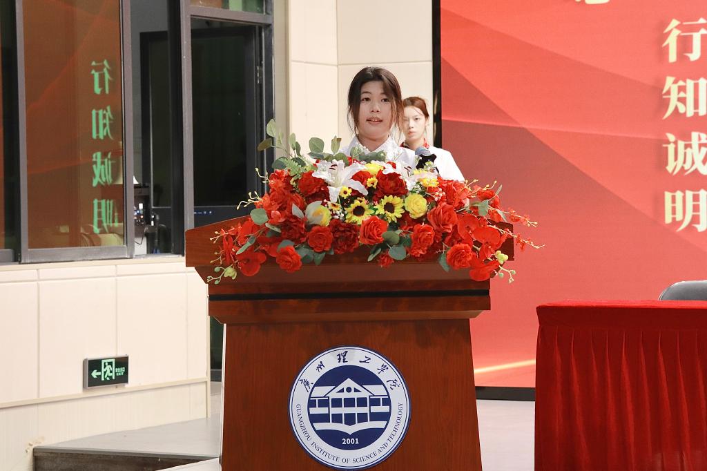 智能制造与电气工程学院庞姗与计算机科学与工程学院赵骏炜代表教师发言,老生代表2022级视觉传达设计专业学生吴诗琳、2024级小学教育专业陈宪嫣为新生送上祝福。新生代表2023级工程管理专业学生曾龙辉、2025级机械设计制造及自动化专业王子轩发言。