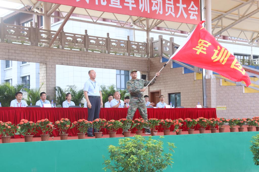 肖海副校长为军训团授旗(惠州博罗校区)