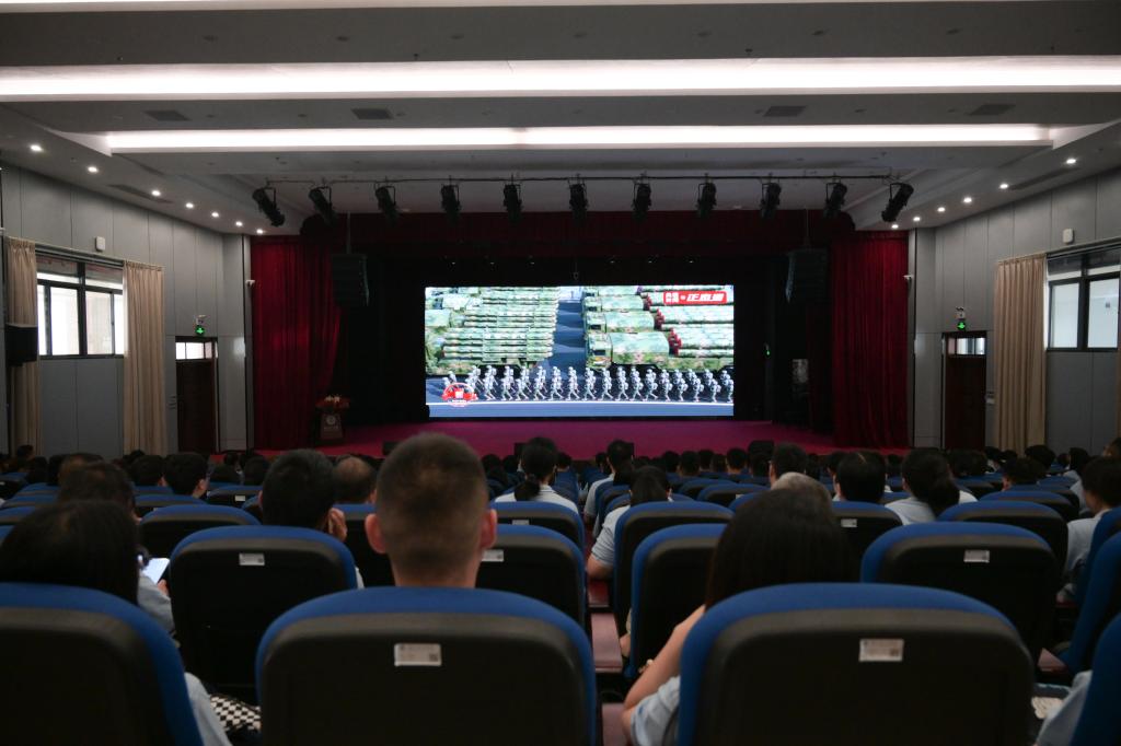 9月3日,纪念中国人民抗日战争暨世界反法西斯战争胜利80周年大会在北京天安门广场盛大举行。为传承抗战精神、厚植师生家国情怀,广州理工学院精心组织全体校领导与师生共同见证这一历史时刻。现场,师生们着装整齐,齐聚报告厅集体观看直播,而未返校的学生也通过电视、网络直播、手机客户端等渠道积极收听收看。