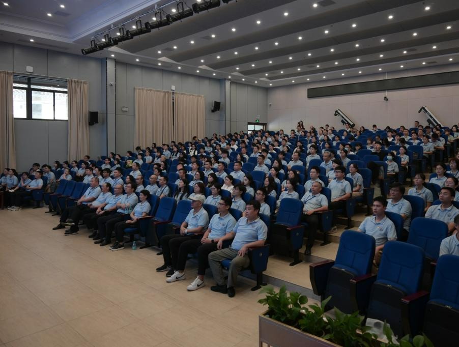 大会直播开启,现场瞬间安静下来,80响礼炮声响彻云霄,国旗仪仗队的脚步声格外有力。国歌奏响,五星红旗缓缓升起,在场师生全体肃立,向国旗行注目礼,齐声高唱《义勇军进行曲》,激昂的歌声传递着对祖国的热爱和对历史的敬畏。