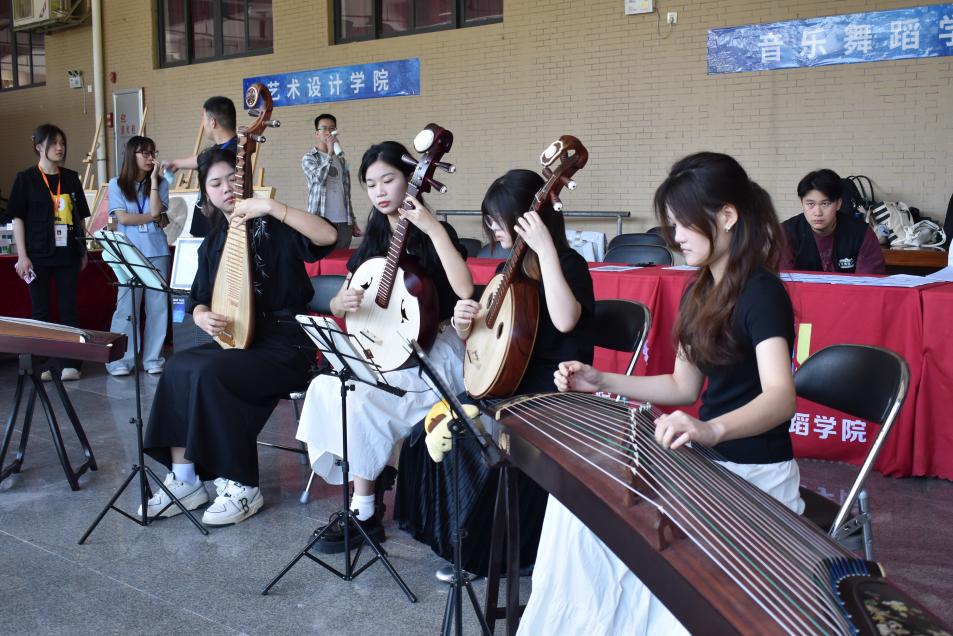 互动区智能制造与电气工程学院自主研发的制氧机精妙高效,拥有智能扫码操控、医疗级稳态供养及自适应湿化系统优势,让观众能直观体会科技创新力量;计算机科学与工程学院的AI实验平台,以更智能、精准和沉浸式的方式呈现实验数据,构建与人工智能深度集成的科研环境,为观众提供智能化实验体验;音乐舞蹈学院用竹笛、古筝等乐器演奏《青花瓷》《敕勒歌》等曲目,令人沉醉于一场震感心灵的视听交响;新能源汽车与现代航空学院的无人机飞行表演精彩绝伦。活动现场气氛热烈,妙趣横生。