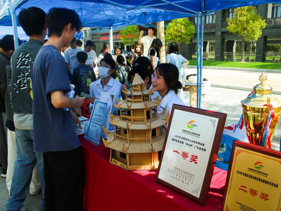 活动展示区智能制造与电气工程学院智能物流搬运与全自动分拣运输车、计算机科学与工程学院用电智能检测与AI实验平台、建筑工程学院天鹿山栖建筑模型与鲁班锁游戏体验、工商管理学院原创足迹报刊与非遗DIY体验长廊、经济管理学院电子商务与农村经济融合发展助力乡村振兴成果展与省外百千万工程项目成果展示、外国语学院别出心裁的书法摄影作品与语言科技学术作品、人文与教育学院书法体验与原创羊城文化纪念文册、人工智能学院基于DP-TABNET模型的课程成绩预警系统与基于欺骗防御的新型蜜罐系统及方法、艺术设计学院掐丝珐琅与嵌瓷工艺、新能源汽车与现代航空学院小型无人机与太阳能试验车获得师生们的一致认可和高度评价。
