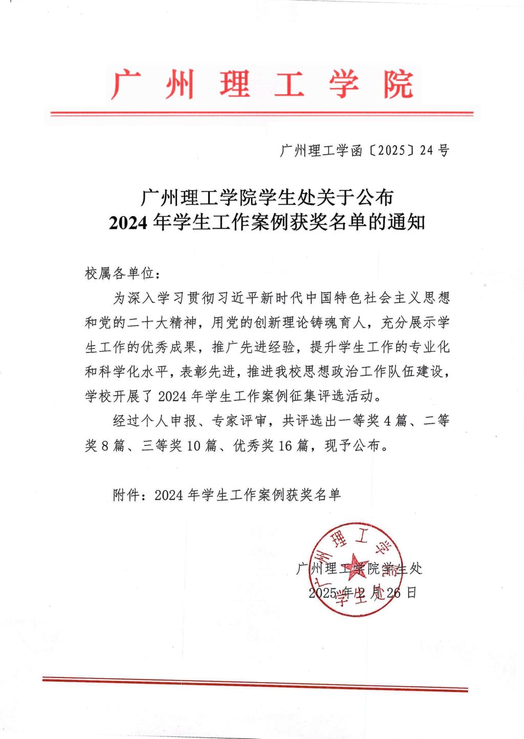 广州理工学院学生处关于公布2024年学生工作案例获奖名单的通知