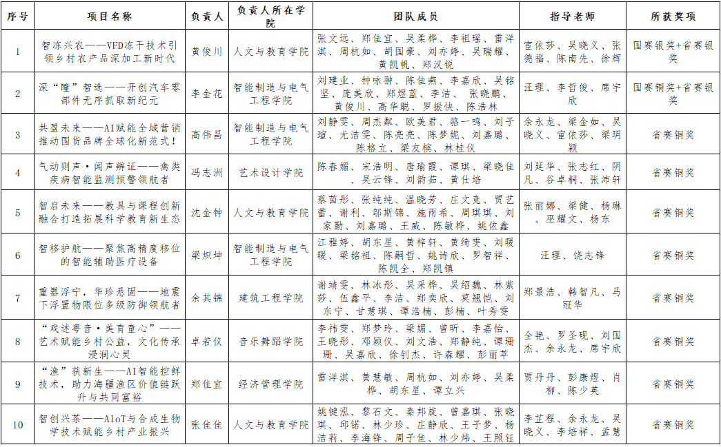 本届大赛我校共取得国赛1银1铜,省赛2银8铜的出色成绩,获奖数量和获奖质量均为学校历史最佳表现,以下为本届大赛我校获奖情况一览表。