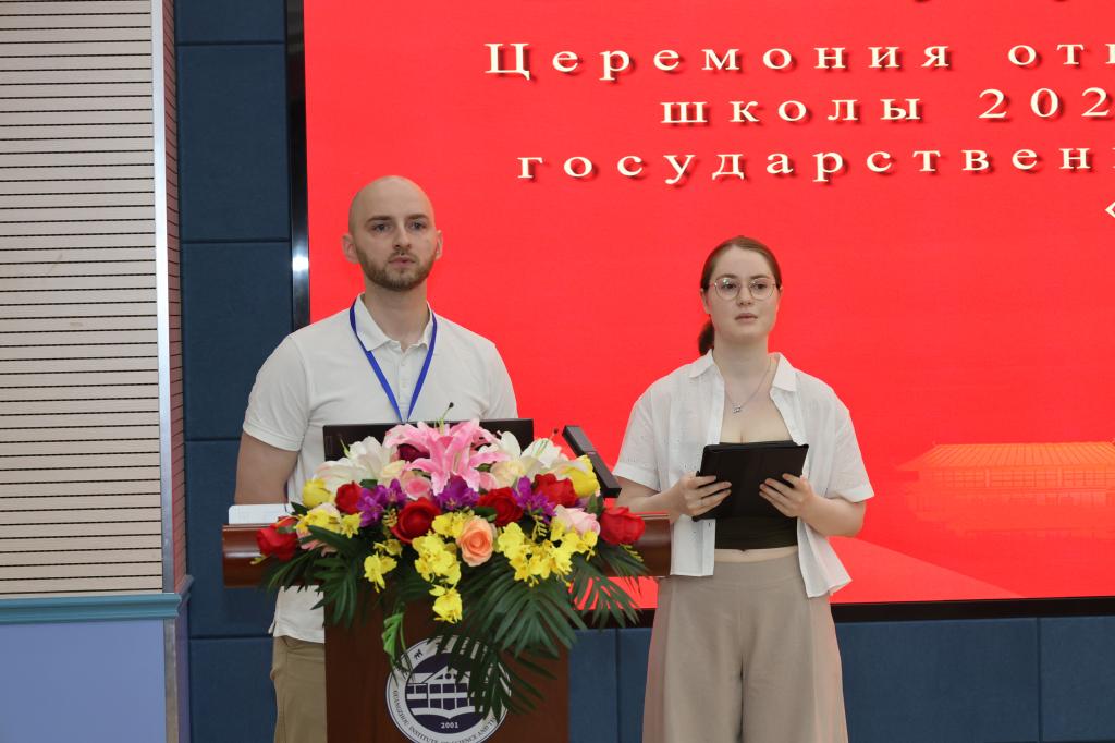 开班典礼上,两名俄罗斯硕士生代表Nastya和Vladimir用中文和俄文发言,表示很感谢有机会参加本次研修班,希望能扩大经济领域的知识以及认识中国的文化和传统,并期待通过企业参访了解中国商业运作模式。