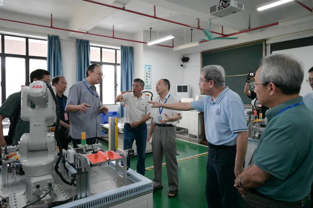 考察团在校长胡社军和常务副校长伏焕昌陪同下,参观了广东省工程技术中心、智能制造实验室、机器人工作室集群、美育中心、创新创业学院、人工智能与数字经济产业学院等教学科研场所,深入了解广州理工学院在改善办学条件、提升教学科研成果方面的持续努力。